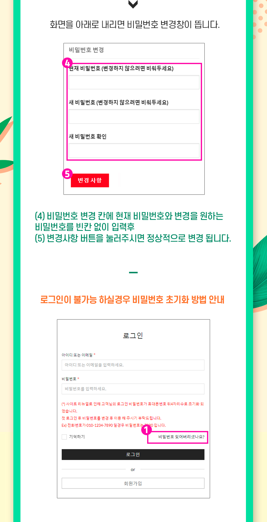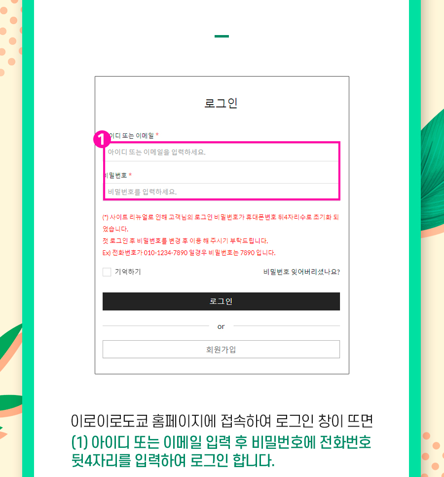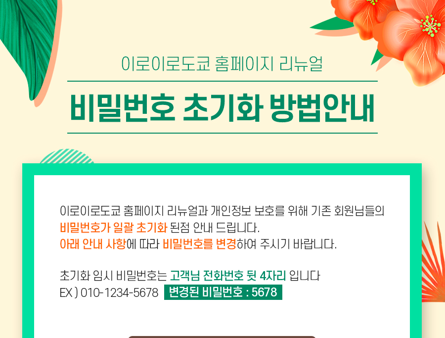 홈페이지 리뉴얼 비밀번호 초기화 방법 안내