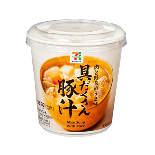 돼지고기, 무, 감자, 양파, 인삼, 우엉, 곤약의 7가지 재료가 들어간 볼륨감 있는 컵 된장국