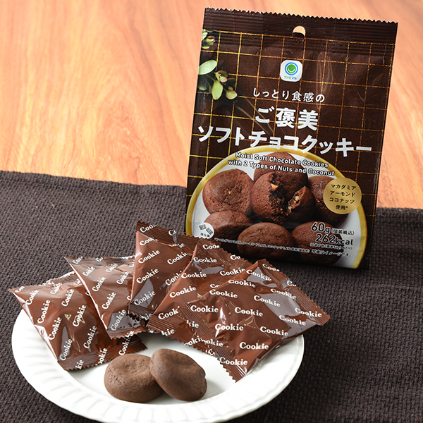 마카다미아, 아몬드, 코코넛 3가지 소재를 사용한 진한 초코 풍미와 촉촉한 식감이 특징인 소프트 쿠키입니다.