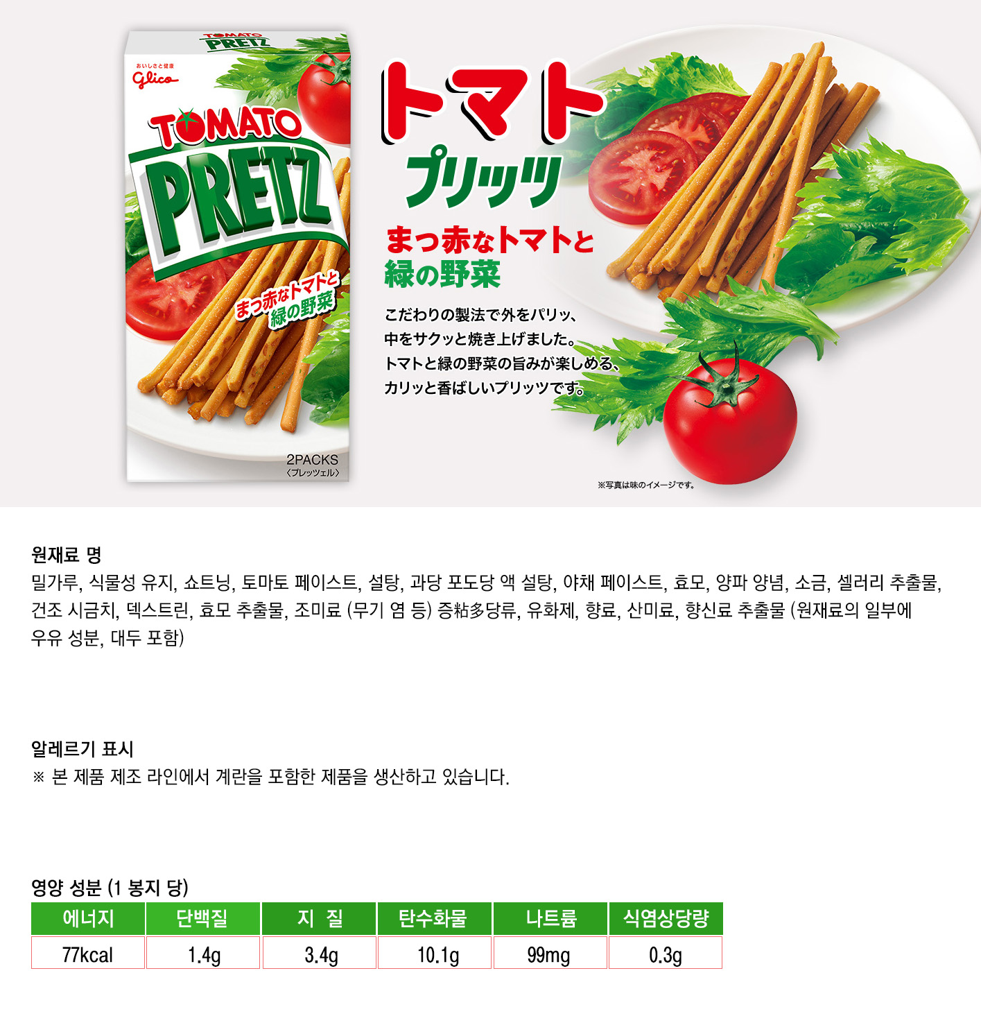 완숙 토마토의 맛을 돋보이게 맛있게 진화한 과자입니다.