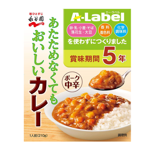 “계란 우유 밀 메밀 땅콩 콩 ‘과’향료 착색료” “화학 조미료”를 사용하지 않고 만든 알레르기 배려 제품 브랜드 ‘A-Label “의 카레입니다. 따뜻하게 않고 그대로 밥 걸쳐도 맛있게 드실 수 있습니다. 제조일로부터 5 년의 장기 보존이 가능하고, 비축 용으로도 적합합니다.