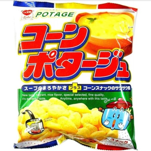 리스카 콘 포타쥬는 일본에서 꾸준한 사랑을 받는 옥수수 스프 맛 스낵으로, 진한 콘 포타쥬 풍미를 그대로 담아낸 부드럽고 고소한 과자입니다.