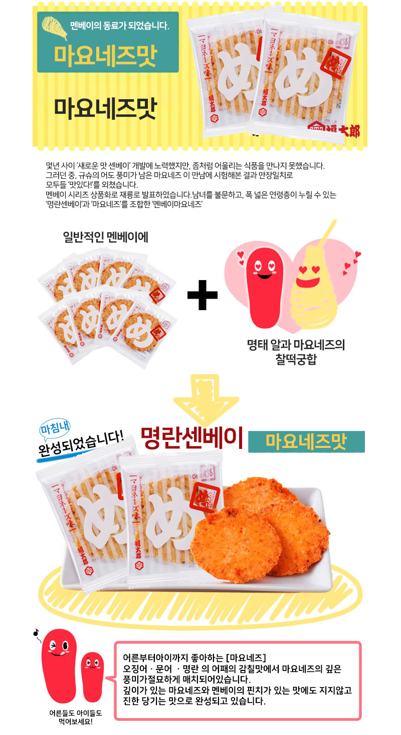 부드러운 명란젓을 사용한 명란젓 모양 센베 마요네즈맛