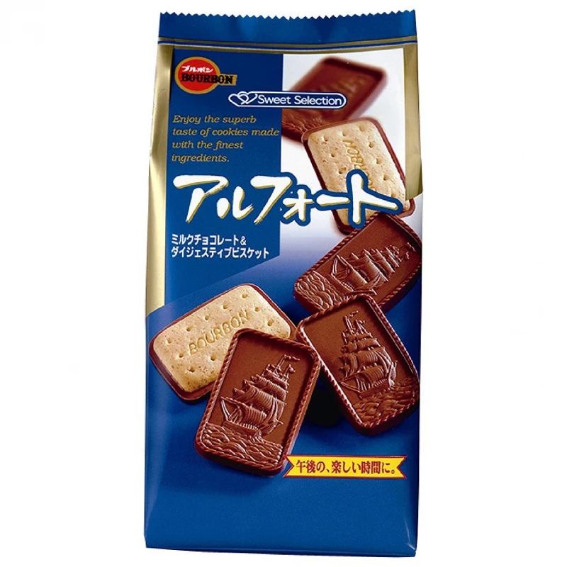 밀 통밀을 사용한 다이제스티브 비스킷과 범선을 형상화한 밀크 초콜릿을 조합했습니다.