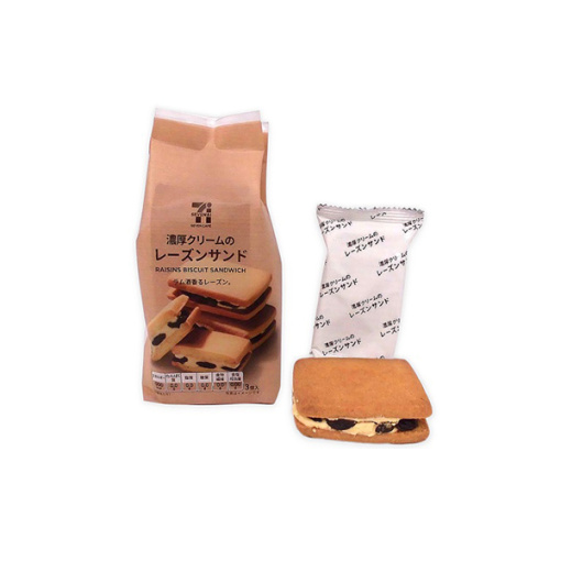세븐일레븐 진한 크림 건포도 샌드 과자는 고소한 비스킷 사이에