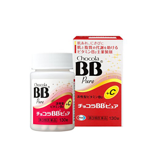 (제 3 류 의약품) [쵸코 라 BB 퓨어 제품 상세]● 피부와 지질 대사를 도와 피부 세포의 환생을 정상화하는 활성 형 비타민 B2는 콜라겐 생성을 돕는 비타민 C, 건강한 피부 만들기를 돕는 3 종의 비타민 B 군을 함유하고 신체 내부에서 피부 저것, 여드름을 개선합니다. [효능 효과]· 다음 증상의 완화 : 피부있는, 여드름, 피부염, 염증, 상처, 습진, 염증, 구각 염, 입술 통증, 혀의 통증, 눈의 충혈, 눈의 가려움, 루돌프※ 단, 이러한 증상에 대해 1 개월 정도 사용해서 개선이 보이지 않는 경우에는 의사 또는 약사와 상담한다.· 다음의 경우 비타민 B2의 보급 : 육체 피로시, 임신 수유, 병중 병후의 체력 저하시 【용법 용량】· 다음의 양을 아침 저녁 식후에 물 또는 따뜻한 물로 복용하십시오.(나이 … 1 회 양 / 복용 횟수)성인 (15 세 이상) … 1 정 / 1 일 2 회소아 (15 세 미만) … 복용하지 않는 것이 【재료】(성인 1 일 용량 2 정 중)리보플라빈 인산 에스테르 나트륨 (비타민 B2 인산 에스테르) … 38mg아스 코르 빈산 칼슘 (비타민 C로 103mg) … 125mg티아민 질화 물질 (비타민 B1 질산염) … 20mg피리독신 염산염 (비타민 B6) … 24mg니코틴 아미드 … 40mg첨가제로, 활석, 탄산 Ca, 옥수수 전분, 히드 록시 프로필 셀룰로오스, 부분 알파 화 전분, 아라비아, 나우 바로우, 산화 티타늄, 세 이산화 철, 스테아린산, 스테아린산 Mg, 판매 랙, 셀룰로오스, 이산화 규소, 흰 설탕, 히뿌로 메로스 , 뿌루 란, 뽀 비돈 매크로 득점, 인산 수소 Ca을 함유하고 있습니다.★ 성분에 관한주의 사항· 비타민 C의 복용하면 소변과 대변 검사 수치에 영향을 미칠 수 있으므로, 소변 및 대변 검사를받는 경우에는이 약을 복용하는 것을 의사에게 알려주십시오.·) 본제의 복용하면 소변이 노랗게 될 수 있지만, 이것은 본 물질에 포함되어있는 비타민 B2가 흡수되어 그 일부가 소변으로 배설되기 때문에 걱정은 없습니다. 【주의 사항】★ 사용상의주의<상담하기,* 복용 후 다음 증상이 나타난 경우에는 부작용의 가능성이 있으므로 즉시 복용을 중지하고 제품 설명서를 가지고 의사, 약제사 또는 등록 판매자에게 상담하십시오.(연결 부위 ... 증상)피부 ... 발진소화기 ... 위부 불쾌감* 복용 후 설사의 증상이 나타날 수 있으므로 이러한 증상의 지속 또는 강화를 보인 경우는 복용을 중지하고 제품 설명서를 가지고 의사, 약제사 또는 등록 판매자 상담하십시오.· 1 개월 정도 복용해도 증상이 나아지지 않으면 복용을 중단하고 제품 설명서를 가지고 의사, 약제사 또는 등록 판매자에게 상담하십시오.★ 보관 및 취급상의주의직사 광선이 맞지 않는 습기가 적은 서늘한 곳에 밀봉하여 보관하십시오.· 소아의 손이 닿지 않는 곳에 보관하십시오.* 다른 용기에 바꾸어 넣지 마십시오. 또한 본 용기에 다른 약제 등을 넣지 마십시오. (오용의 원인이되거나 품질이 달라집니다.)· 습기는 알약의 모양이 변할 우려가 있으므로 젖은 손으로 만지지 마십시오.용기의 충전재는 수송 중에 정제 손상 방지합니다. 용기의 뚜껑을 연 후 버린다.용기 내에 건조제가 들어 있습니다. 복용하지 마십시오.· 사용 기간이 초과 된 제품은 사용하지 마십시오.· 사용 기간 내라도 한 번 용기의 뚜껑을 연 후 품질 유지 측면에서 6 개월 이내를 기준으로 사용하십시오. 상자의 내부 돼지 "개봉 연월일"란에 개봉 날짜를 기입하십시오.