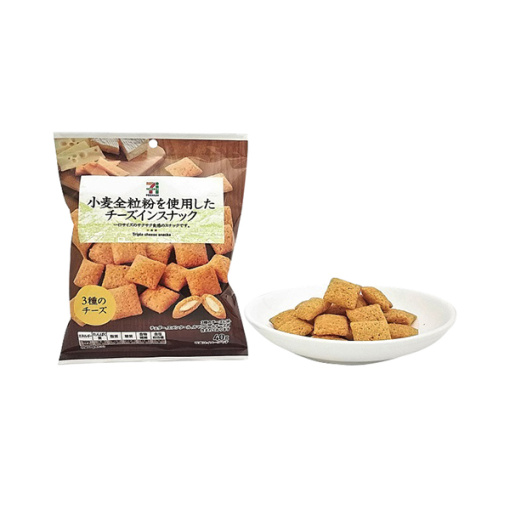 카망베르 치즈, 체다 치즈, 에멘탈 치즈 3 종의 치즈를 사용한 스낵입니다. 바삭 바삭한 식감 농후 한 맛입니다.