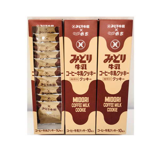 인기의 커피우유맛. 패키지는 우유 팩을 모티브로 미도리 우유다움을 전면에 내세워 어릴 적부터 깊게 뇌리에 새겨진 ‘급식 우유’를 떠올리게 하는 디자인으로 완성했습니다. 키쿠야와 큐슈유업의 콜라보레이션 「밀크쿠키」. 오이타현 우유의 맛을 꽉~ 과자에 담은 그리움과 애정이 담긴 밀크쿠키입니다. 개별 포장으로 보관이 용이, 나눠 먹기에도 좋습니다.