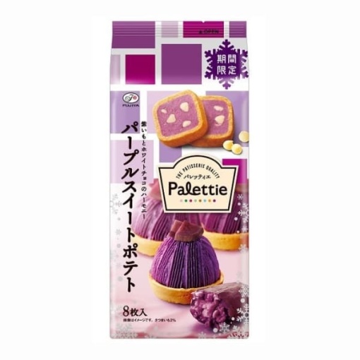 보라색도 페이스트와 화이트 초콜릿 칩을 반죽한 촉촉한 원단을 고소한 새크리 원단으로 감싸, 타르트 모양으로 잘라 소프트 타입의 쿠키. 집에서 간편하게 「애프터눈 티」기분을 즐길 수 있는 귀여운 외형과 호화로운 맛의 쁘띠 푸르 쿠키입니다.