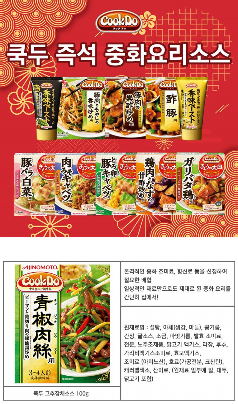아지노모토 쿡두 고추잡채 소스 100g