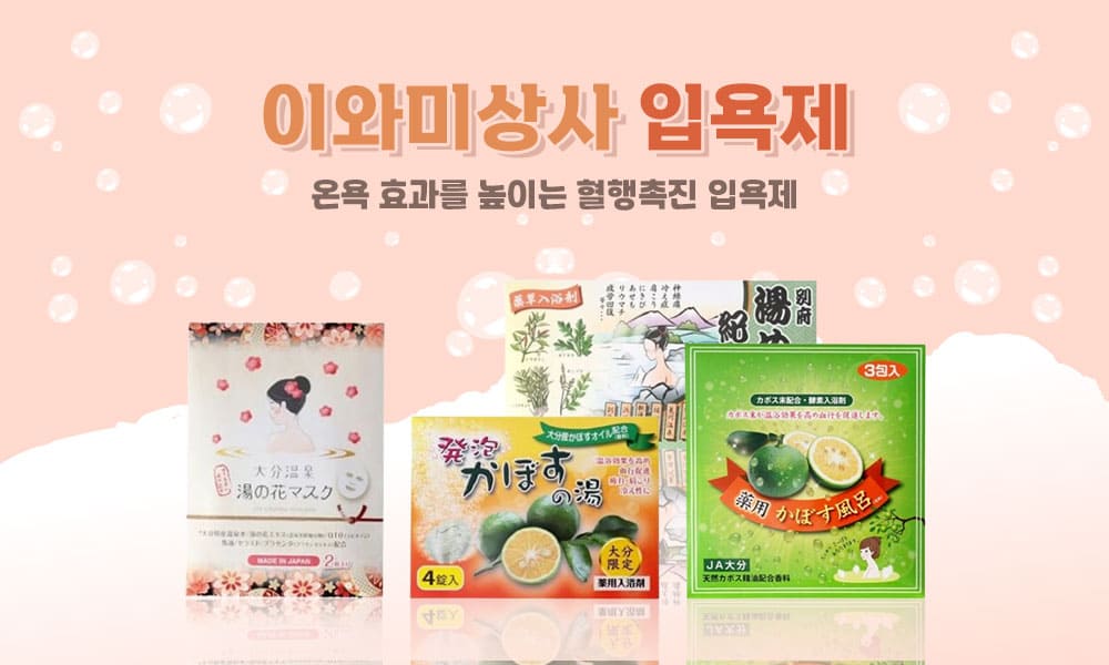 뷰티화장품기획전 포스트온욕의 효화를 높여주는 이와미상사 입욕제 이와미상사 입욕제 기획전 뷰티/화장품 이와미상사 약용 입욕제 카보스부로 25gx3정 ₩ 7,790 온욕 효과를 높이고 혈액 순환을 촉진합니다. 장바구니 뷰티/화장품 이와미상사 유노하나 마스크 2장 ₩ 17,310 피부에 윤기 듬뿍 장바구니