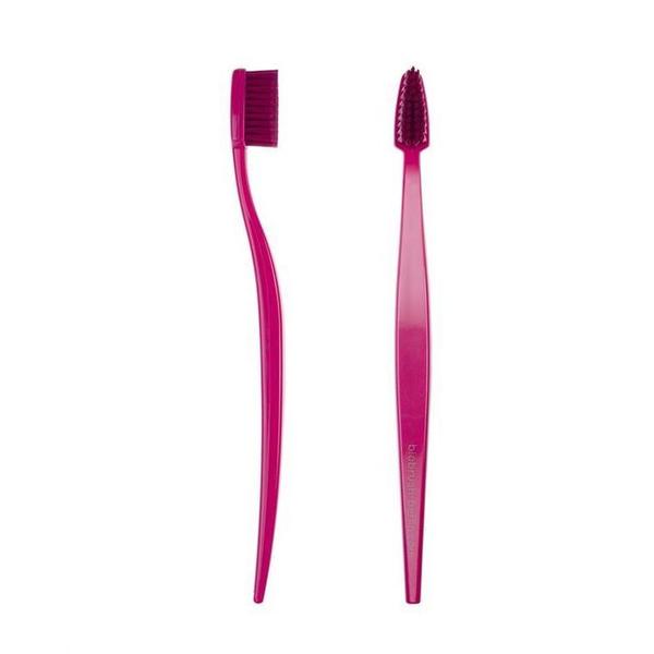 사용감을 고려한 특징적인 모양의 브러시가 있는 칫솔입니다.