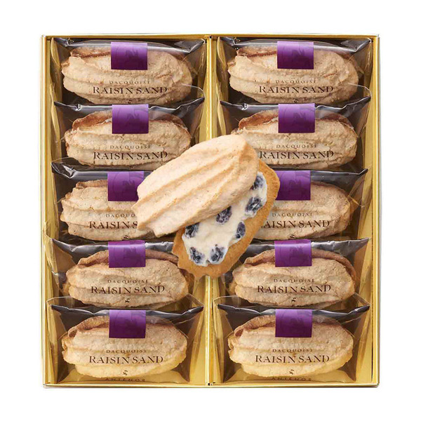 부드러운 화이트 초콜릿 크림과 양주에 담근 건포도를 아낌없이 샌드.바삭 바삭 경쾌한 입 치워와 향기로운 건포도의 맛이 좋은 하모니를 만들어냅니다.