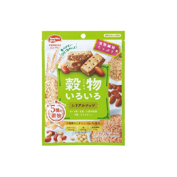 밀가루 (국내 제조), 설탕, 쇼트닝, 땅콩, 물엿, 밀가루 통밀 시리얼 가공품, 오트밀, 밀 선체 가공품, 아몬드, 시리얼, 계피, 현미 퍼프, 콩 퍼프, 소금 / 결정 셀룰로오스, 계란 Ca , 팽창제, 유화제, 피로 인산 철, 산화 방지제 (V.C, V.E), 니코틴산, 트레할로스, 탄산 Ca, 판토텐산 Ca, V. B1, V. B2, V. B6, V. A, 엽산, 향료, V. D, V. B12