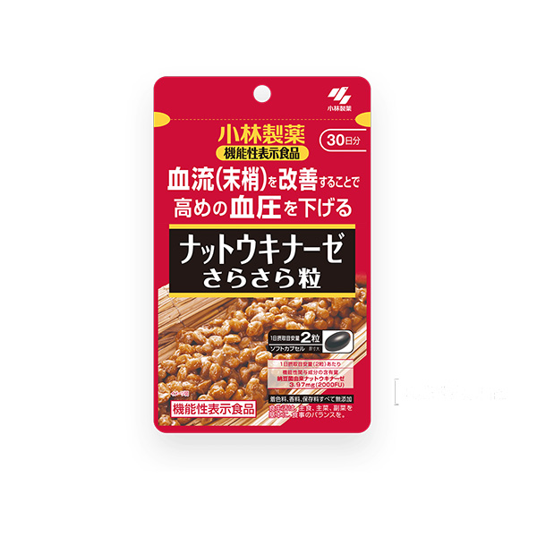 ●신고표시: 본 제품에는 낫토균 유래 너트당 키나제가 포함되어 있습니다.낫토균 유래 낫토키나제는 혈류(말초)를 개선하여 혈압이 높은 쪽의 혈압을 낮추는 기능이 보고되었습니다.혈압이 높은 분들에게 적합한 식품입니다.