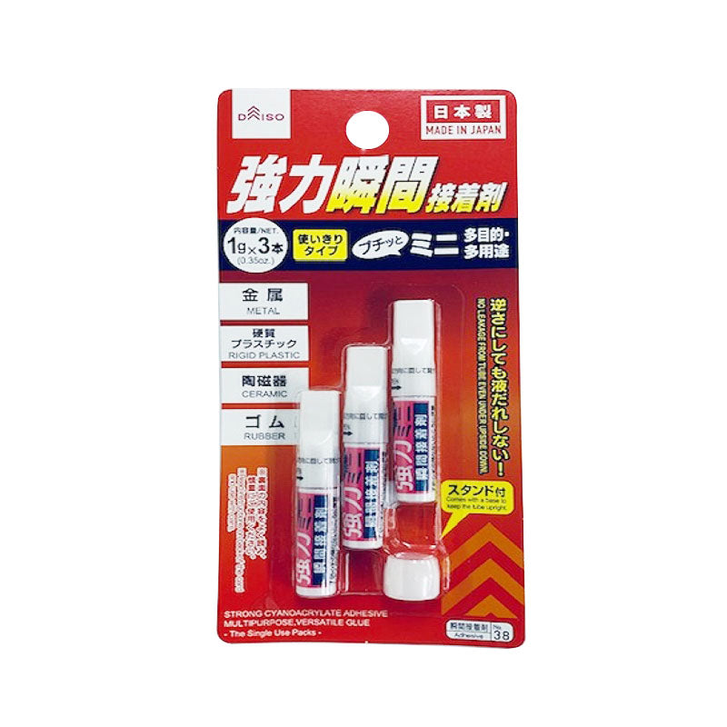 재질 :Cyanoacrylate 제품 크기 : 0.9 mm × 5.5 mm 함량 : 3 개 유형 (색상 패턴 디자인) : 모듬 없음 단순히 캡을 돌려서 쉽게 사용할 수 있습니다. (불필요함) 유형 유형 : 화학 반응성 접착제 적용 : 금속 단단한 플라스틱 등 접착 등