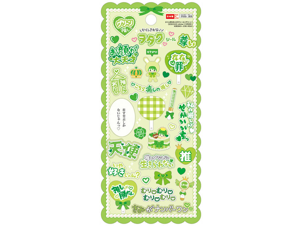 사진이나 굿즈 등 추천을 데코레이션하기 위한 스티커로, 아이돌이나 애니메이션, 게임 캐릭터가 취급하는 모티브가 담겨 있습니다.