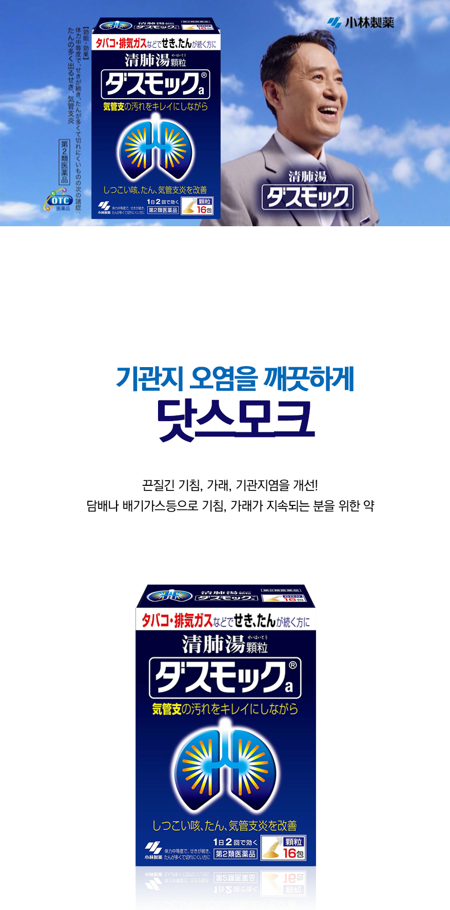 담배나 배기가스등으로 기침, 가래가 지속 되는분을 위한 기관지약. 끈질긴 가래, 기침, 기관지염등을 개선하는데 도움을 줍니다.