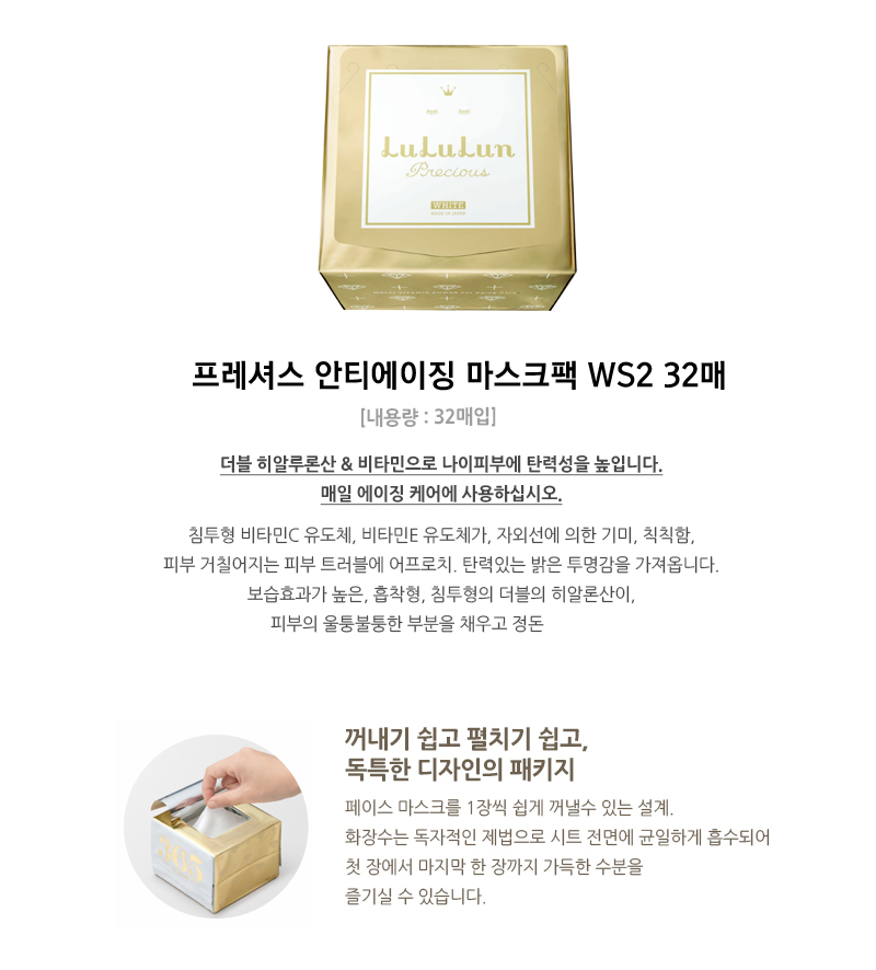 루루룬 프레셔스 안티에이징 미백 마스크팩 WS2 32매입 - 이로이로도쿄 루루룬 프레셔스 안티에이징 미백 마스크팩 WS2 32매입 8만원 이상 무료배송 서비스 루루룬 프레셔스 안티에이징 미백 마스크팩 WS2 32매입