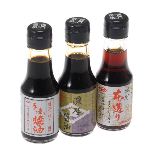 국내 유통량 불과 1.7 %의 대두를 원료로 자연 환경 속에서 만들어진 천연 양조 간장.긴 시간을 들여 건설 된 간장은 장인들의 마음이 듬뿍 담겨 있습니다.생선회 나 튀김 등에 사용 다시 발효 간장, 두부 등까지하실 淡口 간장 등 편리한 3 개 세트.주문하신 제품은 장인 간장의 포장지로 포장합니다.사진은 포장의 예입니다.