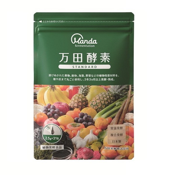 54종류의 식물성 원재료를 사용해, 과실 껍질과 씨까지 통째로 발효 숙성시킨 만다 효소 시리즈.