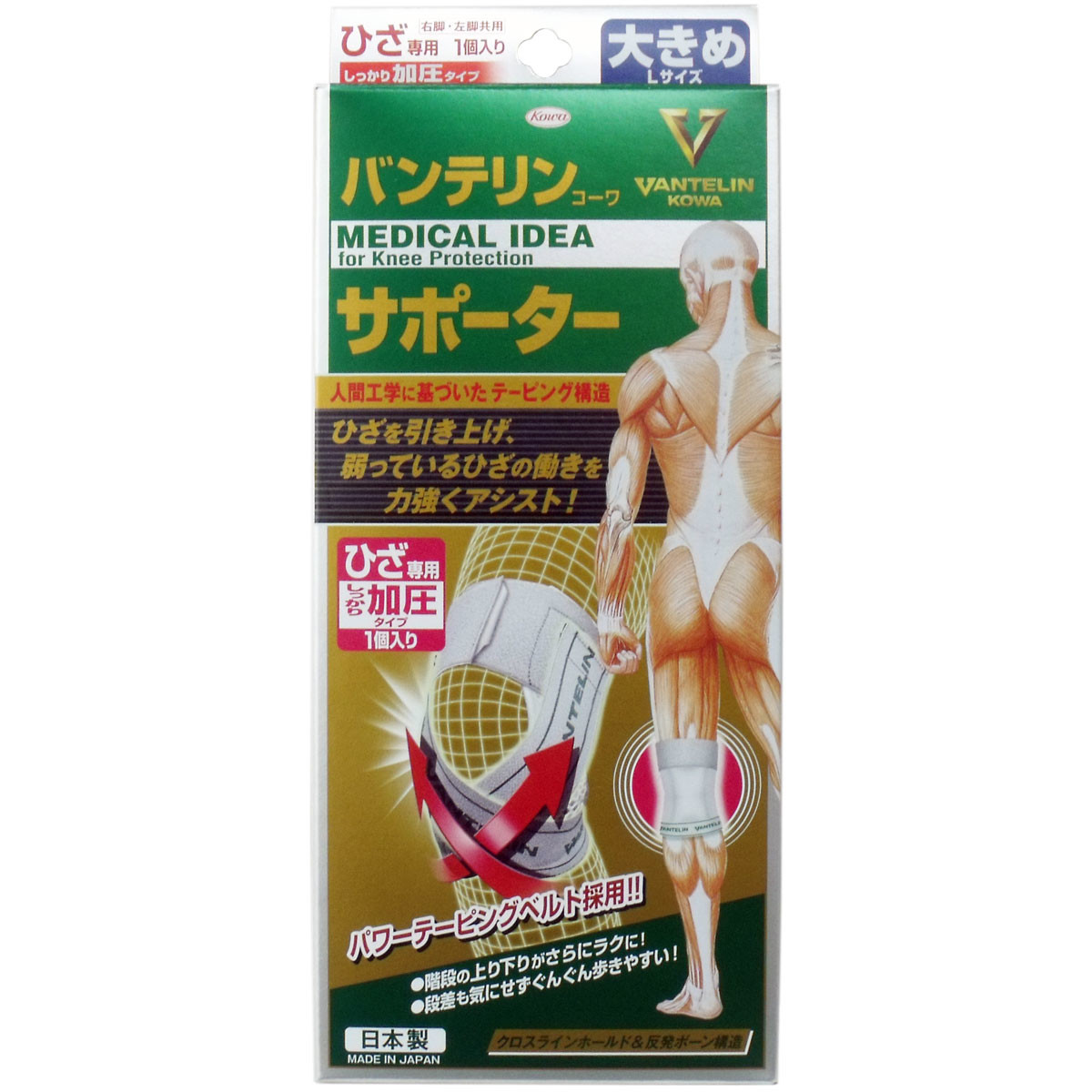 파워 테이핑 벨트가 무릎의 접시를 끌어 올리고 발을 디딘 다리를 제대로 지원합니다.