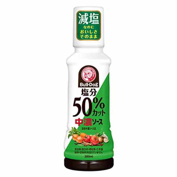 불독 中濃 소스에 비해 염분을 50 % 인하 한 소스.첨가물 (색소 증점제 · 화학 조미료 · 감미료) 미사용