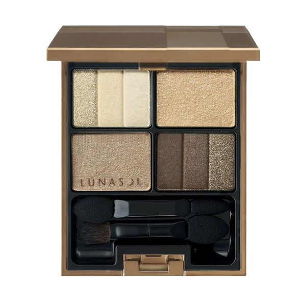 피부 컬러인 베이지에서 발상을 한 색상과 다른 광감의 그라데이션을 통해 계산된 입체적인 눈매를 만드는 4색 세트 아이섀도입니다.