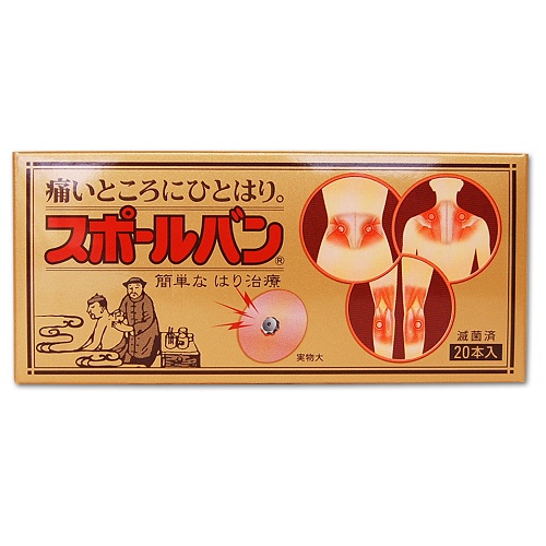 산화철 분말 성형판(압입자)의 중앙에 작은 구멍을 뚫고, 거기에서 탄력을 내어 테이프로 고정한 침 치료 기구입니다.