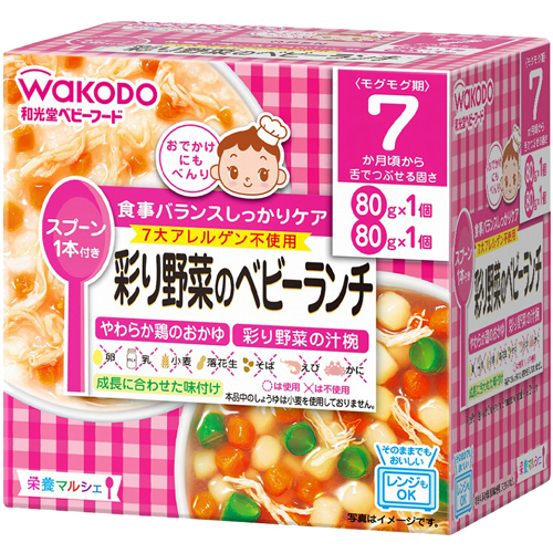 7개월 무렵부터 ‘부드러운 닭죽’과 ‘채소즙 국물’을 함께 담아 놨습니다.