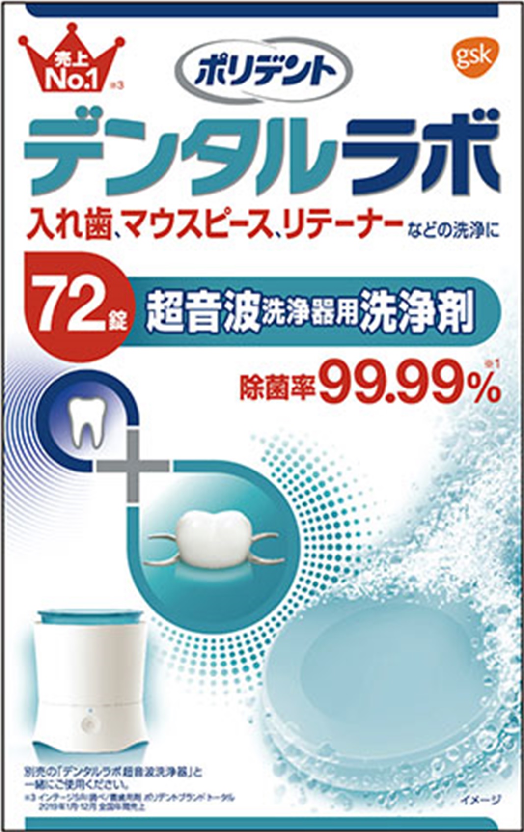 살균율 99.99%. 초음파 틀니 세정기 전용.