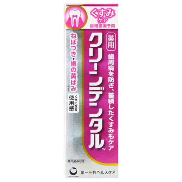 ●3종의 살균 성분과 2종의 소염 성분, 불소, 제올라이트 등 클린 덴탈 L(빨강)과 같은 10종의 약용 성분에, 한층 더 스테인을 띄워 떨어뜨려 이를 희게하는 폴리비닐피롤리돈을 추가 배합해, 11종의 약용 성분으로 치주병의 예방은 물론, 치아의 주름도 케어
