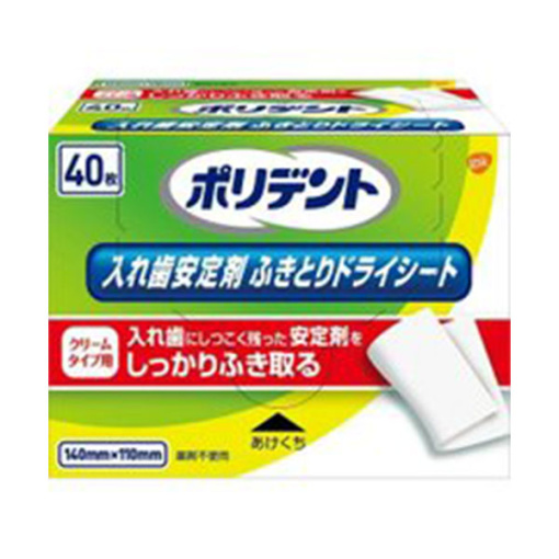 2. 틀니 안정제 닦아 드라이 시트를 1장 꺼내, 틀니를 떨어뜨리지 않게 손으로 확실히 들고, 틀니에 남은 안정제를 닦아낸다. 사용한 시트는 버린다. 또 화장실에는 흘리지 않는다.