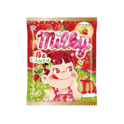 감칠맛 넘치는 피스타치오 맛의 밀키 안에는 딸기 젤리 소스가 가득