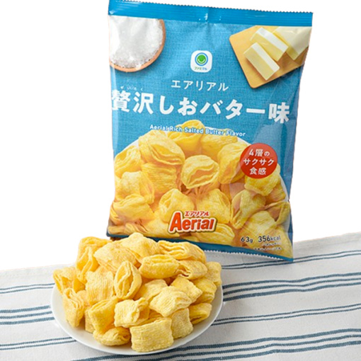 독자적인 제조법으로 만든 4겹 콘 스낵입니다